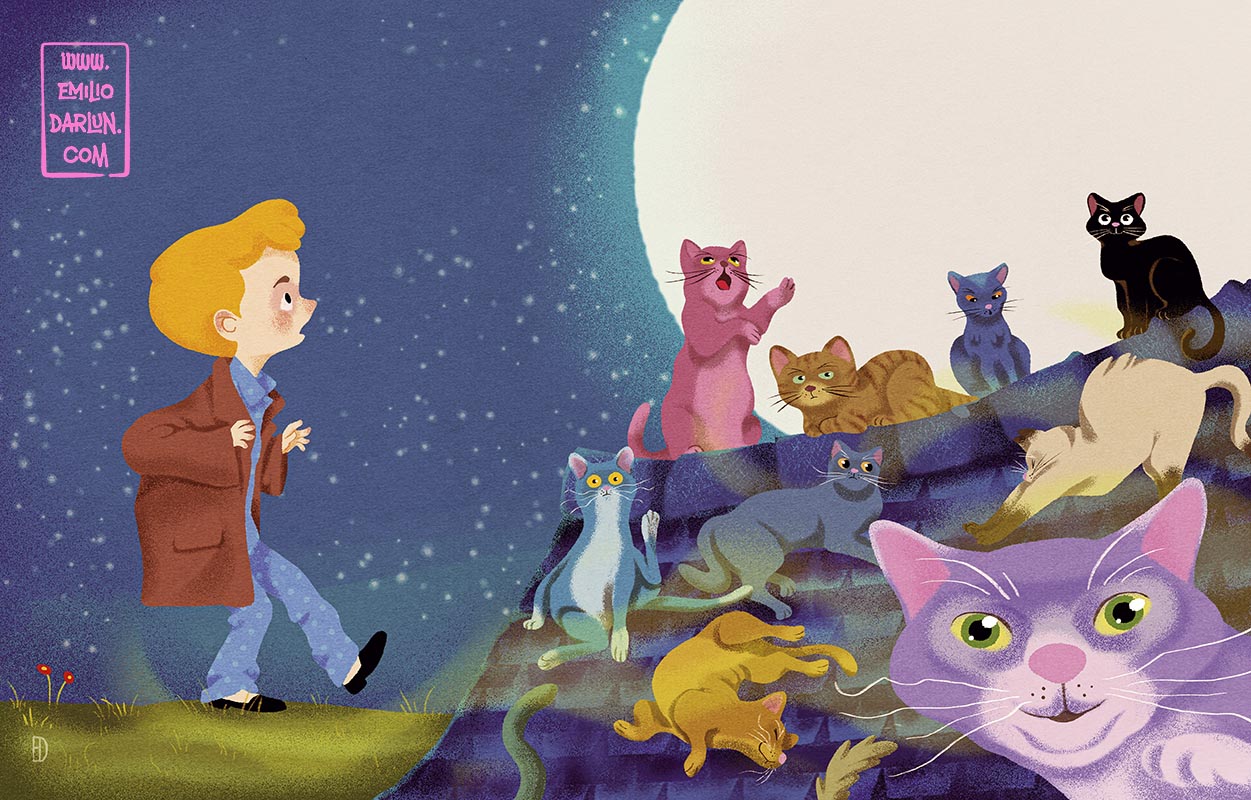 Until one night, Martín hears strange noises on the roof and discovers something incredible: the cats are entering through a hole next to the chimney of his house!