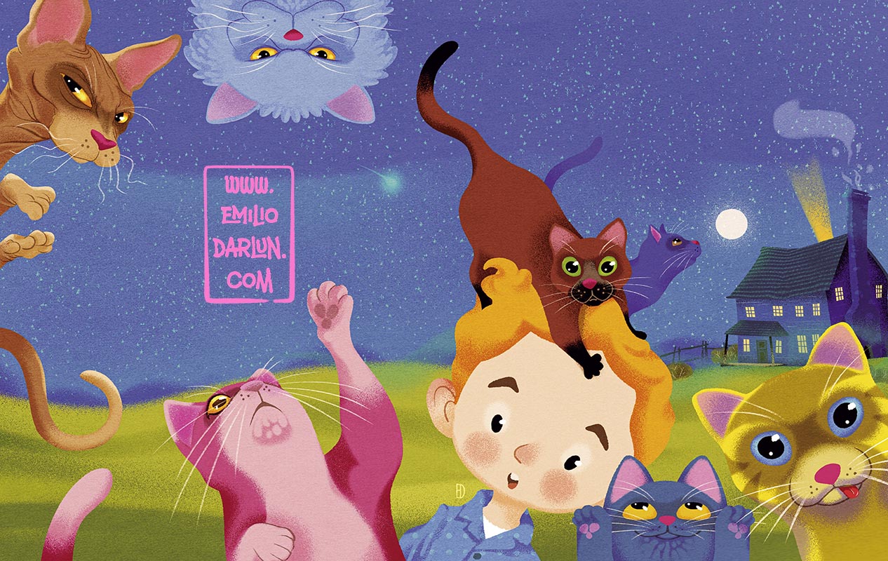 Cover and interiors of " La casa en donde los gatos desaparecían" ( THE HOUSE WHERE CATS DISAPPEARED )